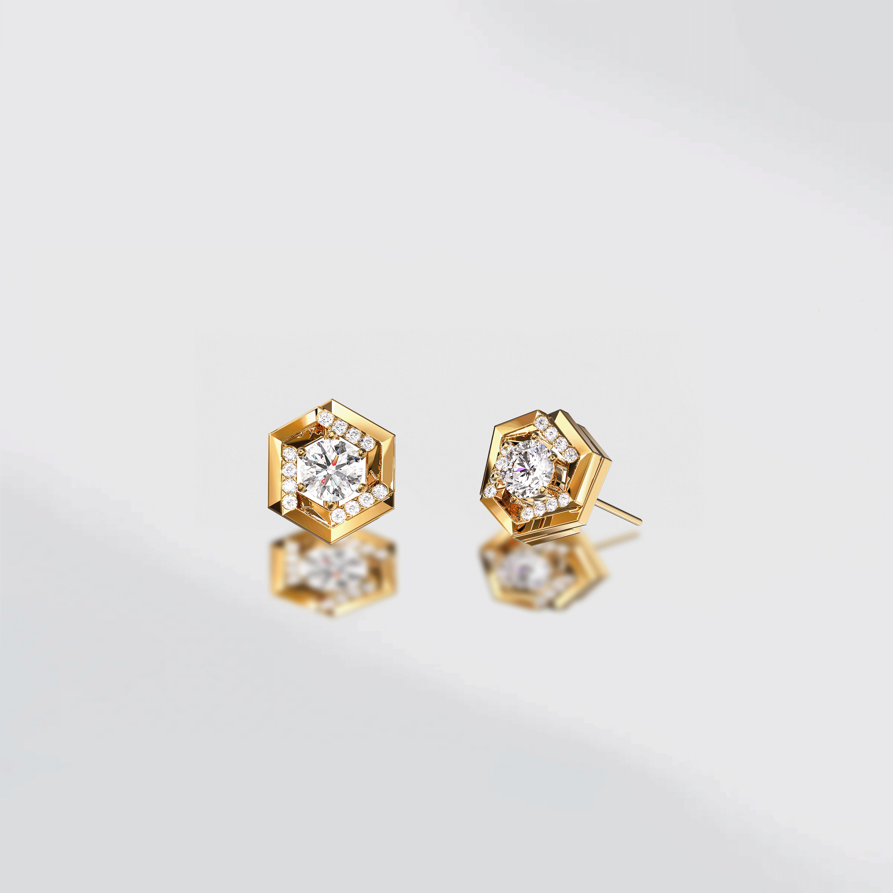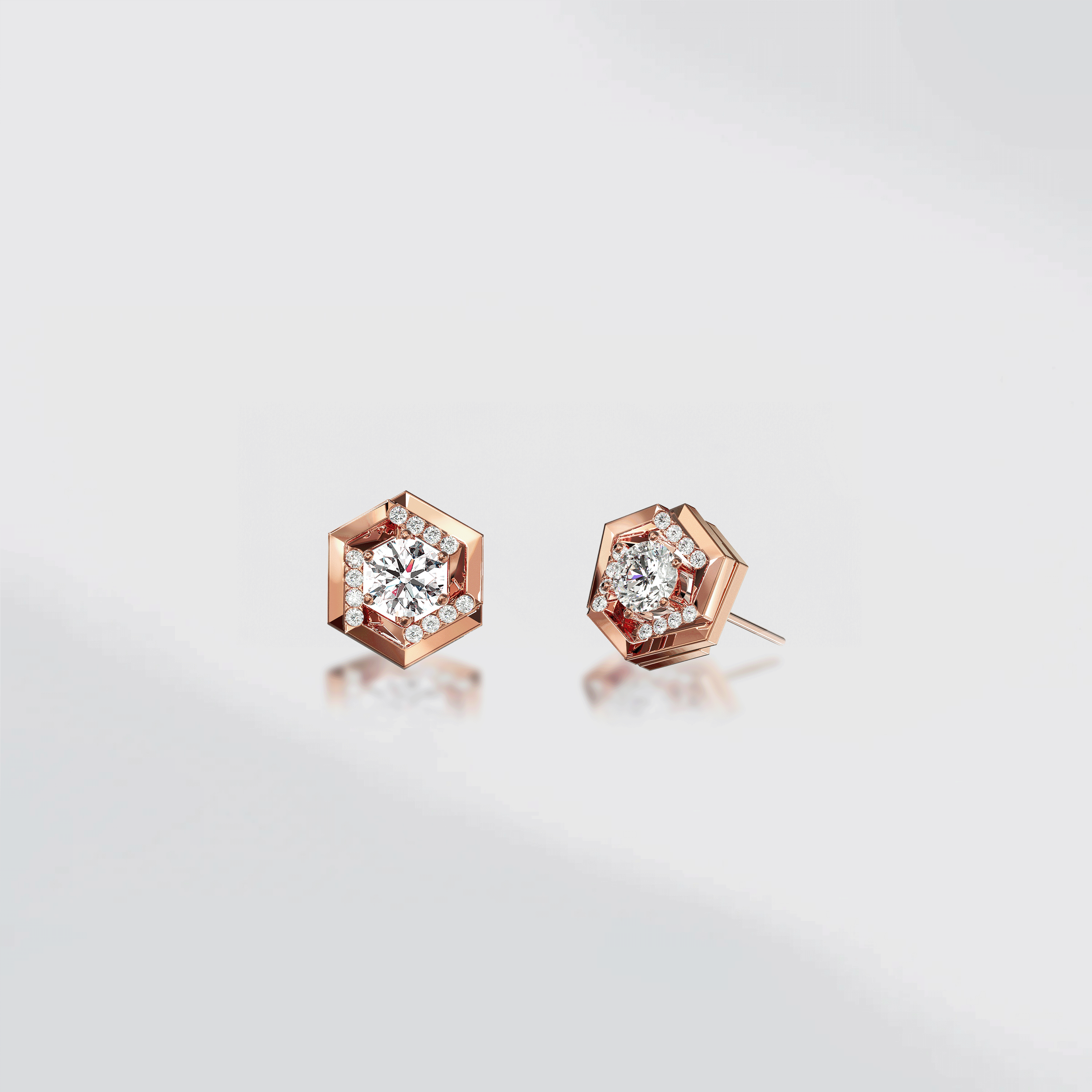 這款玫瑰六邊形耳環展現了優雅的幾何設計,精心鑲嵌的小鑽讓耳環呈現出立體感,散發迷人光芒。其獨特的六邊形造型融合了經典與現代風格,使其成為時尚配飾的完美選擇。