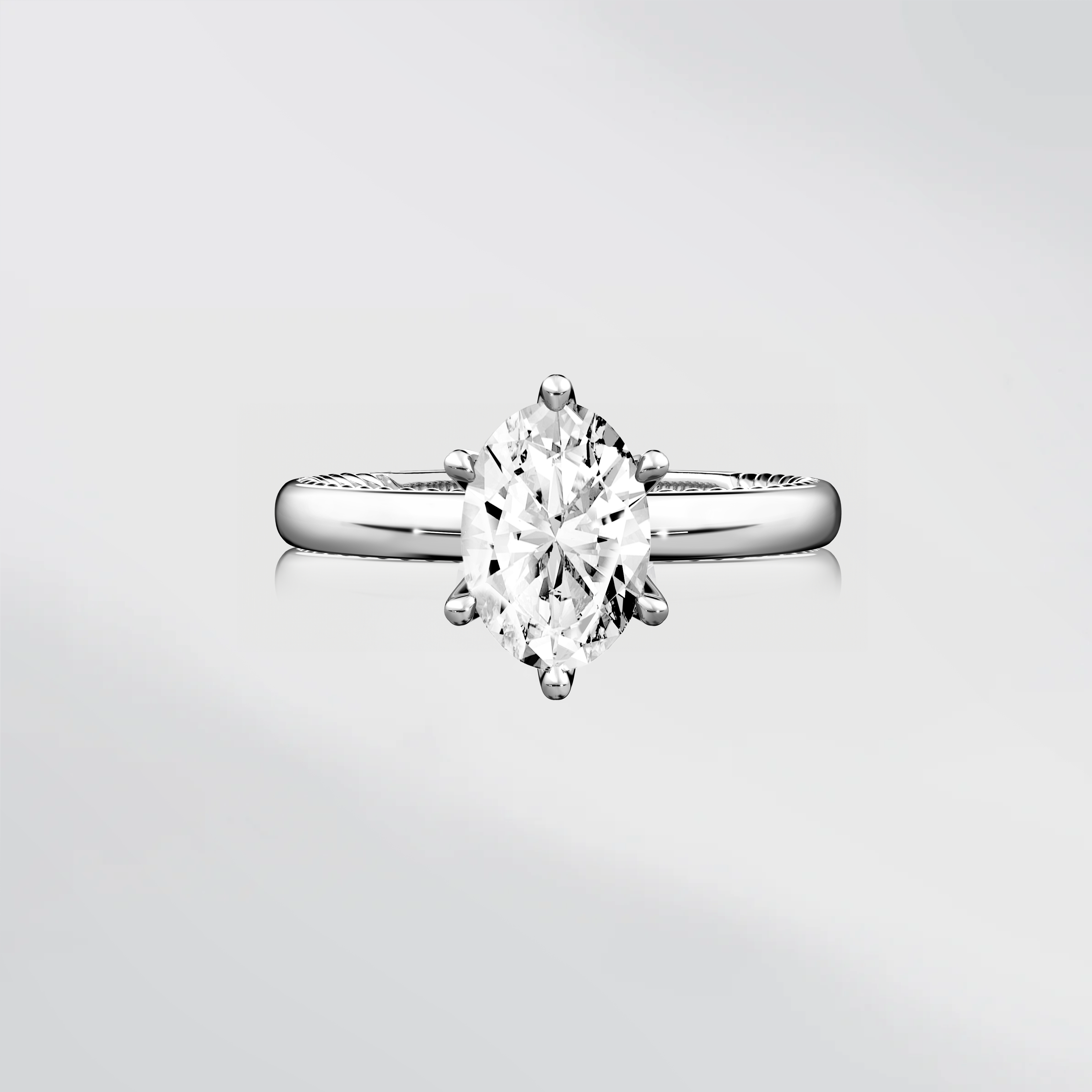 AZF003-O 求婚鑽戒以低調內斂為設計靈魂,呈現出一份無聲卻強大的優雅。戒圈背面飾有經典的月桂葉圖案,象徵著永恆的承諾。1.0克拉的橢圓形車工主鑽,於這款簡約大方的戒指上熠熠生輝,勾勒出自信、典雅而含蓄的氣質。這款設計適合追求簡約、卻渴望與眾不同的愛情見證者,完美詮釋愛情的承諾與永恆,隸屬於天際月桂系列Celestial Laurel Collection的經典款式之一。