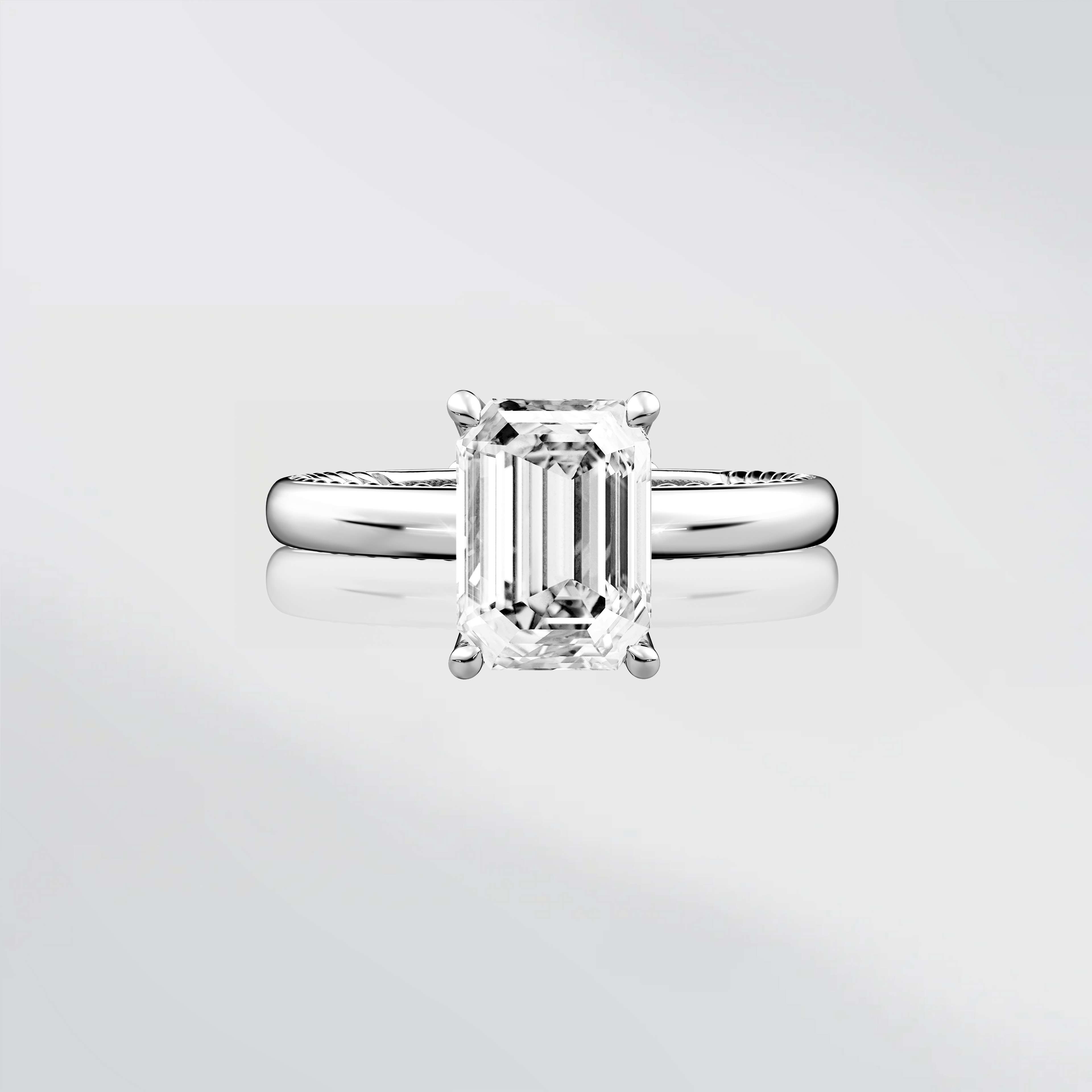AZF003-E 求婚鑽戒以低調內斂為設計靈魂,呈現出一份無聲卻強大的優雅。戒圈背面飾有經典的月桂葉圖案,象徵著永恆的承諾。1.0克拉的祖母綠車工主鑽,於這款簡約大方的戒指上熠熠生輝,勾勒出自信、典雅而含蓄的氣質。這款設計適合追求簡約、卻渴望與眾不同的愛情見證者,完美詮釋愛情的承諾與永恆,隸屬於天際月桂系列Celestial Laurel Collection的經典款式之一。