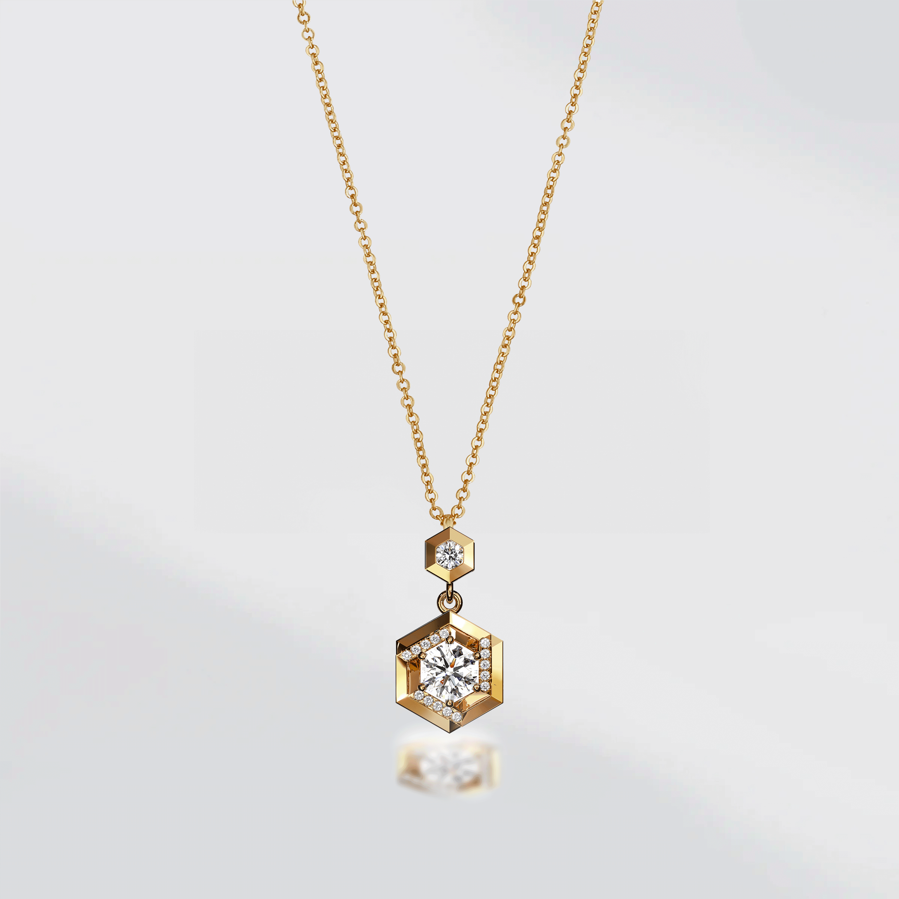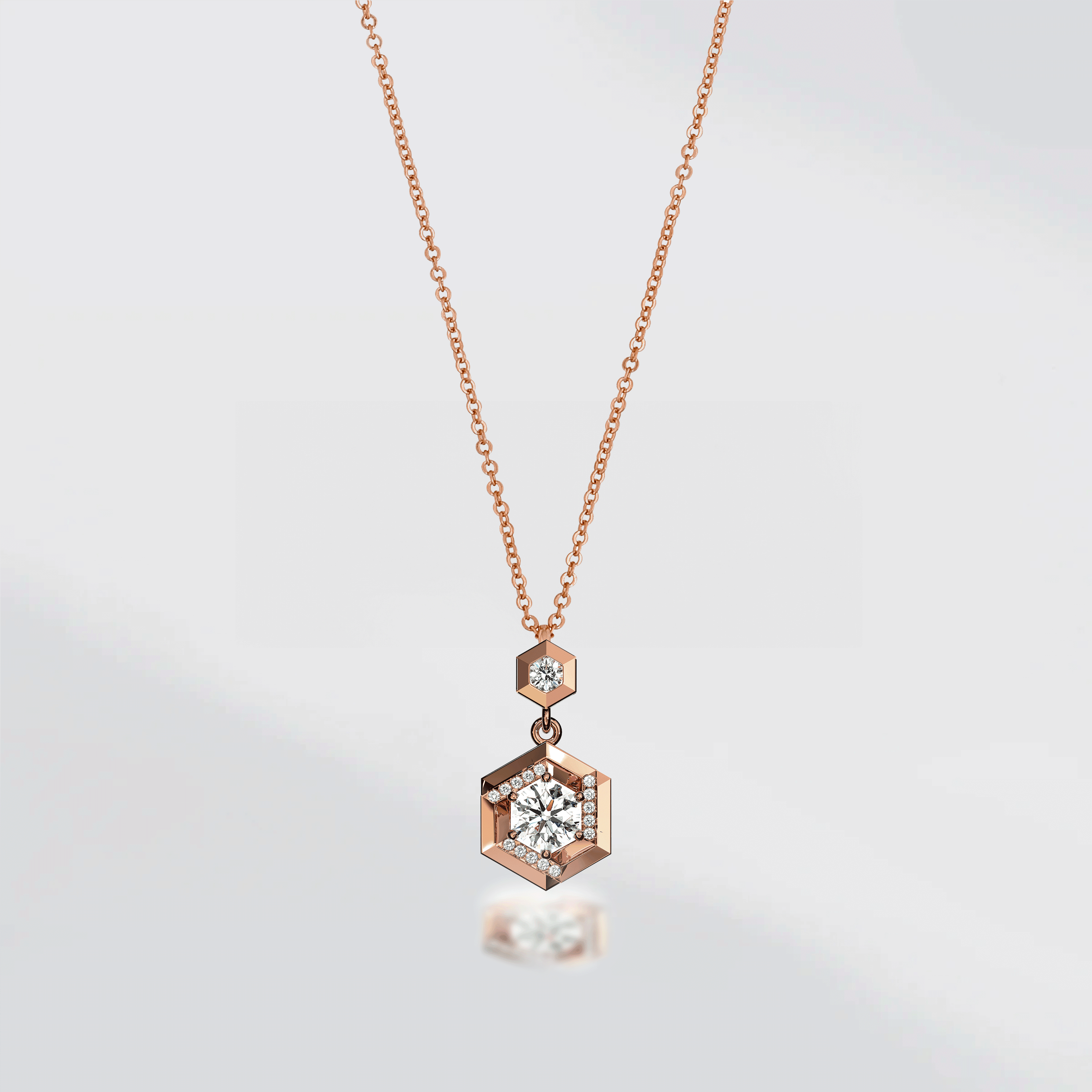 雙玫瑰項鍊融合了經典的設計與細膩的細節,六邊形線條環繞主鑽,呈現多層次美感。精心設計的排鑽增添了華麗感,而小玫瑰的加入使整體更加豐富多變。無論是日常穿搭還是特殊場合,這款項鍊都展現了優雅與品味。
