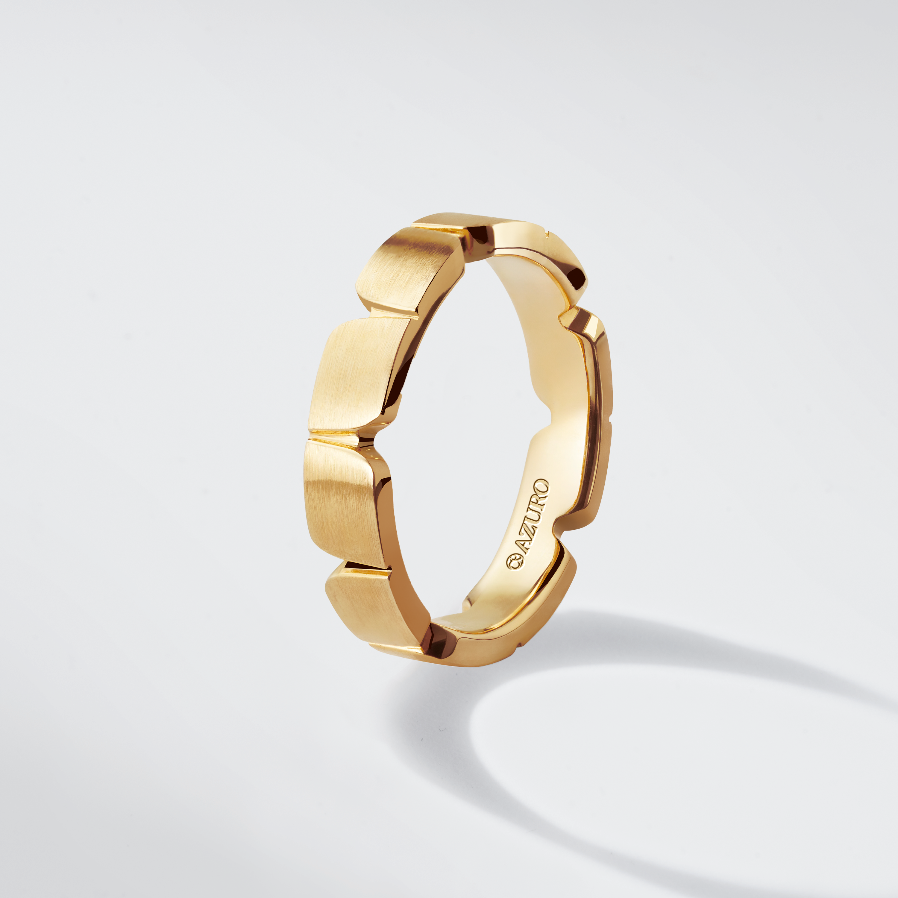 這款精緻設計的戒指以雙葉組合為靈感,通過180度的翻轉呈現出動人的對稱美。外圈經過手工磨砂處理,角度俐落,凹槽處的圓弧導角設計更顯精巧巧妙。設計風格剛中帶柔,內圈的圓弧戒圈則保證了佩戴的舒適感。